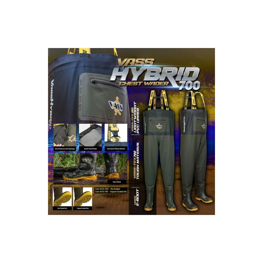 Vass freut sich, die neue 'VassHybrid700' Wathose vorstellen zu können! Sie kombiniert das robuste Vass-Tex 700 Material im unteren Bereich mit dem leichten Vass-Tex 350 Material im oberen Bereich, um das Gewicht zu reduzieren und die Flexibilität zu erhöhen. Diese Kombination bietet Anglern das Beste aus beiden Welten ohne Kompromisse!